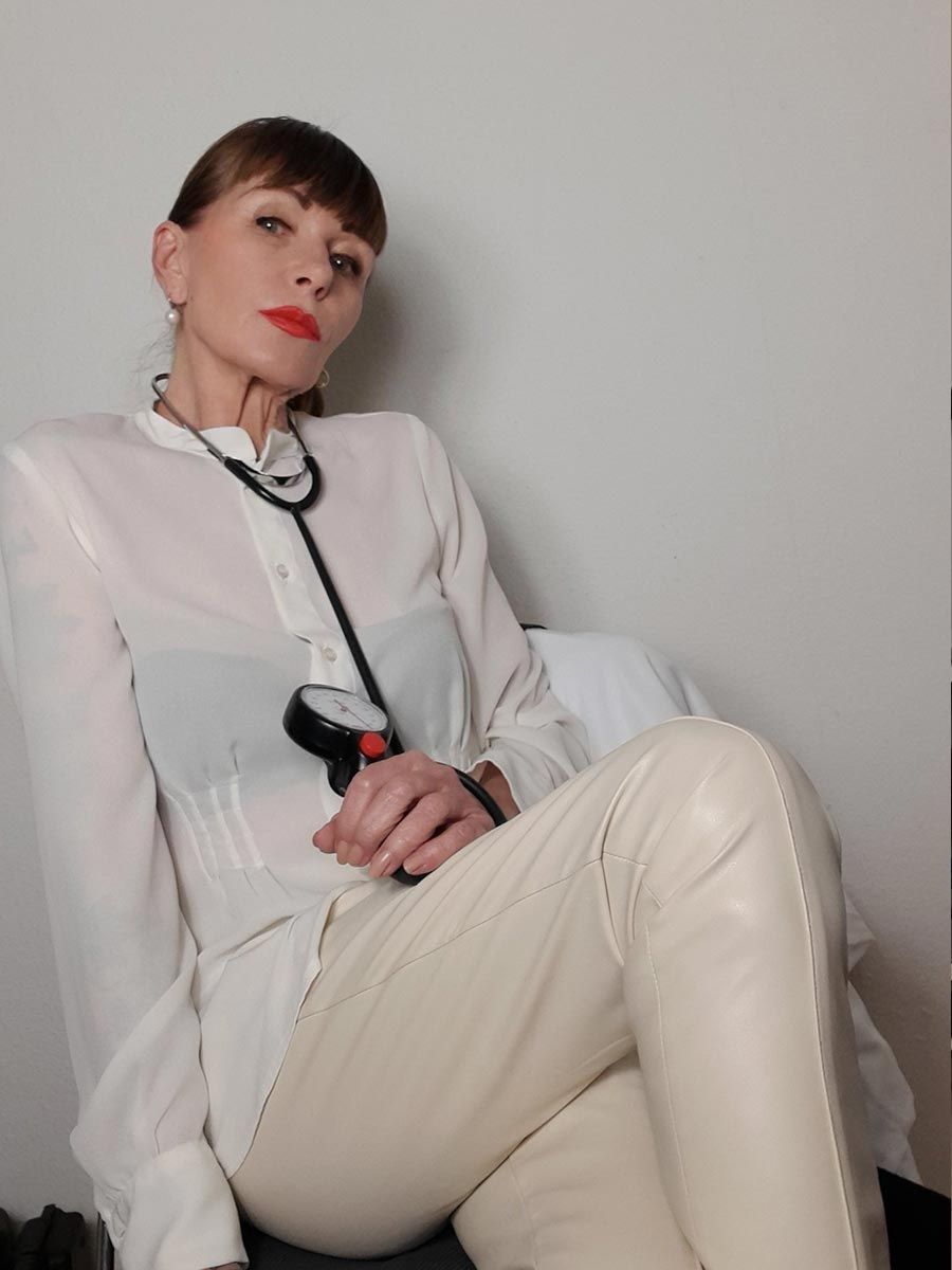 Meine zentrale Leidenschaft ist das Spiel an sich, die Kunst zwischen Verführung und Führung. Als "Vollblut - Rollenspielerin" unterziehe ich Dich einer auch strengen , medizinischen Begutachtung, - Untersuchung und der erforderlichen Behandlung.