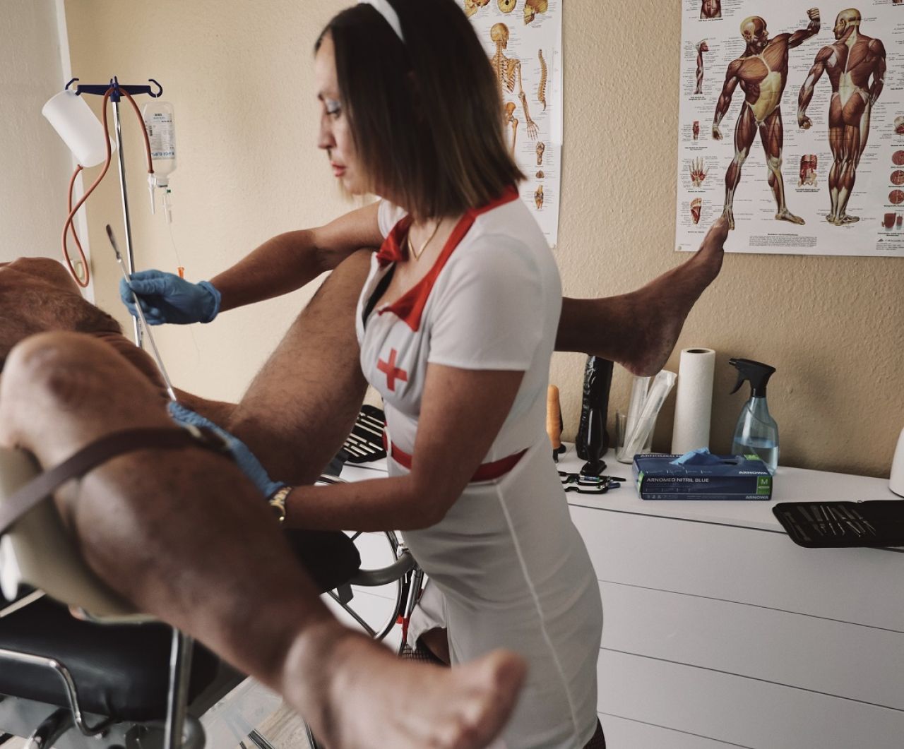 Hier verordne ich Dir nach einer gründlichen Voruntersuchung und Anamese verschiedene Behandlungen. Klistier, Dauerkatheder, Prostatamassage, Hodenmassage, Analdehnung, Analstimulation mit Dildos, Fisting, Lok.-An., Unterspr., Nadeln, Strom etc